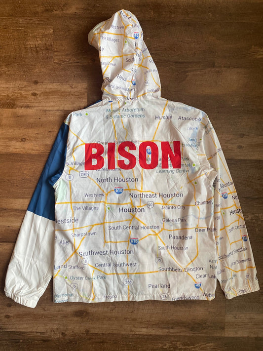 Regular price $74.00 USDRegular priceUnit price / perSale price $74.00 USDTags: A Herd Of Bison, bison, Exclusive City Map Collections, houston fashion, jacket, Kareem, kareem day, Pullover, windbreakerDescription:Blush Pullover windbreaker with embroidered stitching and map of Houston area on the back. Limited release. Meal donated to homeless help for every jacket purchased. (Allow 5-10 business days for jacket shipping)
